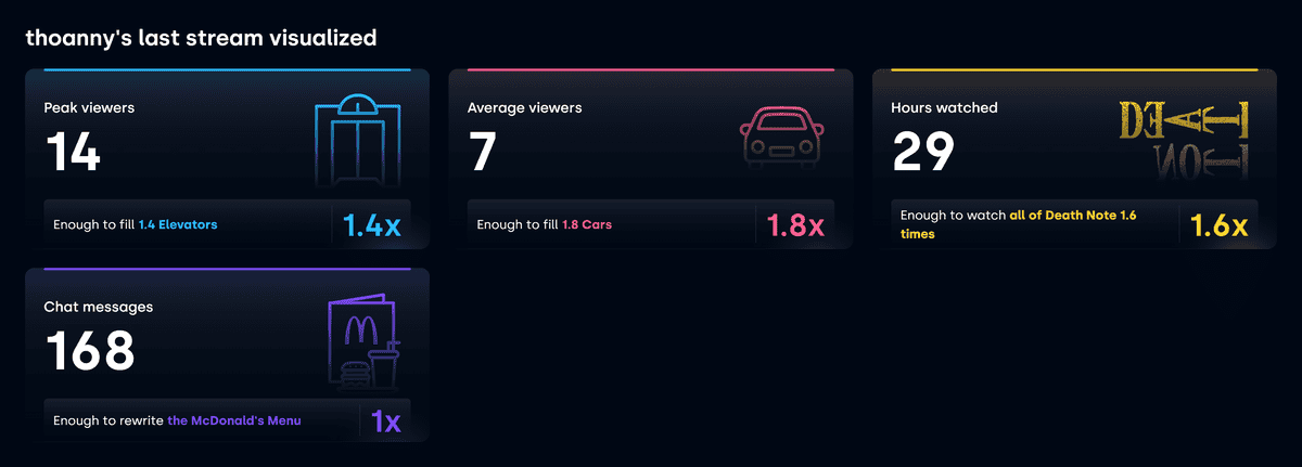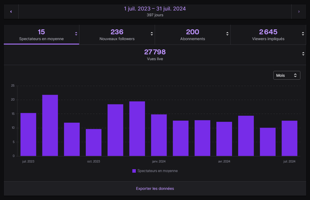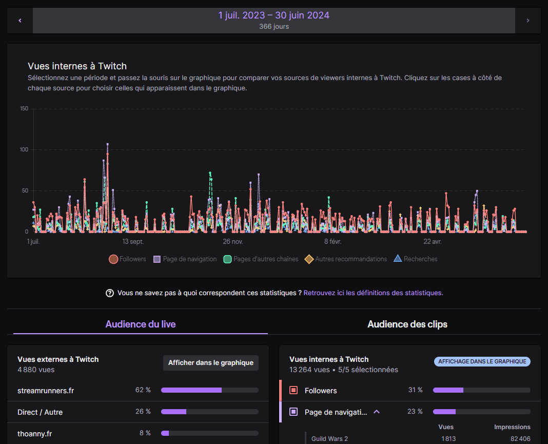 Et n’oubliez pas aussi qu’il faut comparer ce qui est comparable. N’allez pas comparer vos statistiques à celles du GP Explorer, de grandes streameuses ou streamers, ou encore aux périodes de confinements où Twitch a vu son utilisation exploser.