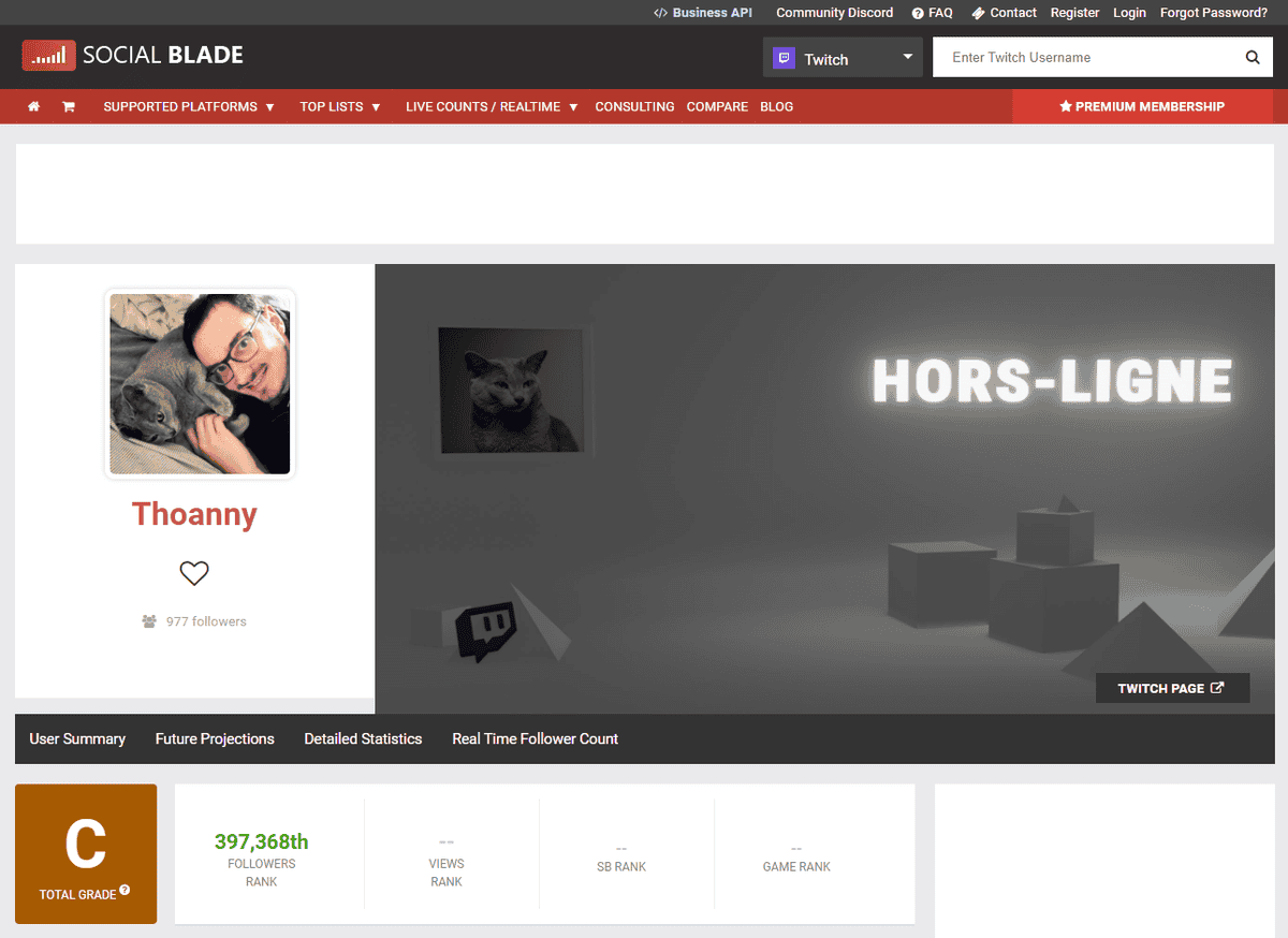 Il est assez similaire à TwitchTracker, même s’il a une apparence différente. Je note quelques différences intéressantes :